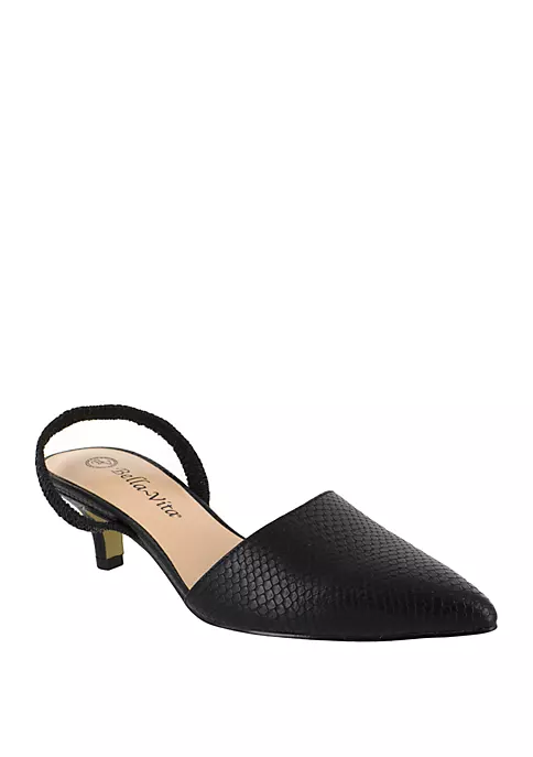 The Sarah II by Bella-Vita features a pointed toe on a kitten heel for a ladylike silhouette. Easy to wear, this dress heel features an elasticized slingback strap that holds the foot in place.