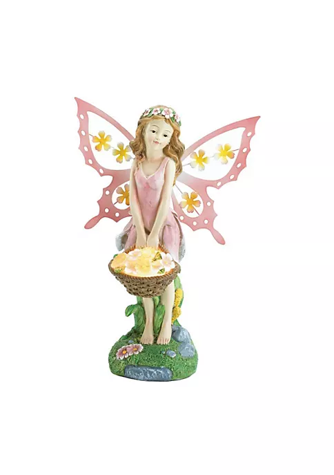 This pink fairy delivers lovely glow to your garden at night, and charming flowers by day. This garden statue features a pretty fairy with pink wings and lots of flowers. The solar panels soak up the sun by day to make her shine at night. Item Weight 1 pound. Dimensions: 7.75″ x 4.38″ x 10.8″. Material: Polyresin, Plastic Solar Panel.