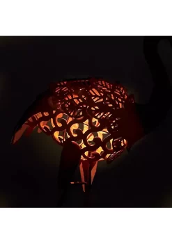 Whimsical garden decor is a fairy on top of a colorful sphere surrounded by little flowers. During the day, the solar panel collects the sun’s energy. At night, the ball under the fairy lights up. Provides lovely lighting at night and it’s a great piece of outdoor art during the day. Just stake into the ground – no cords required. 0.8 pound. 5 x 4 x 34 inches tall. Glass, plastic, and iron.