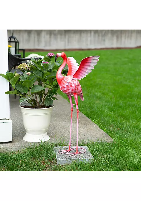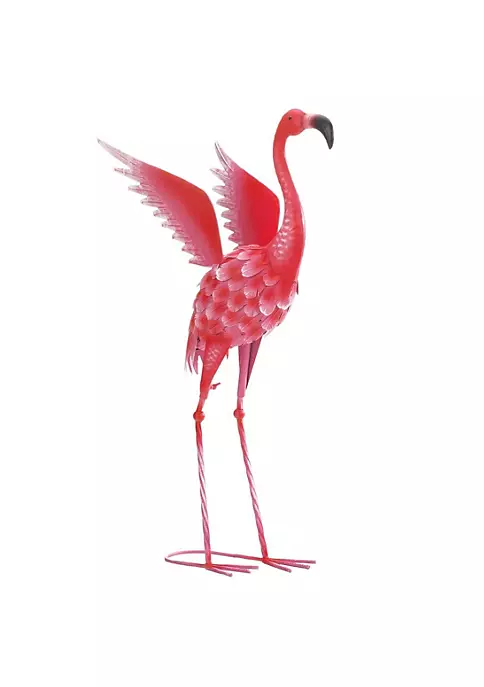 This flamingo yard statue is made with solid iron and features textured feathers and gorgeous details.