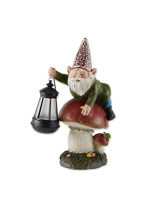 This charming garden accent features a solar panel that soaks up the sun by day, and then at night, the gnome’s black lantern shines in the dark. Cute details include a little snail and homey flowers.
