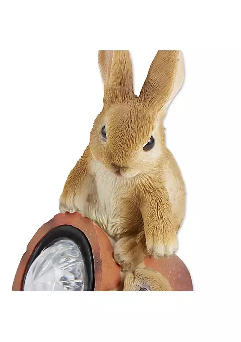 Cute solar garden light features a mother and baby rabbit. Details are amazingly realistic! During the day, the solar panel collects the sun’s energy. At night, the light on the front turns on. Perfect for a yard, garden, or front porch.