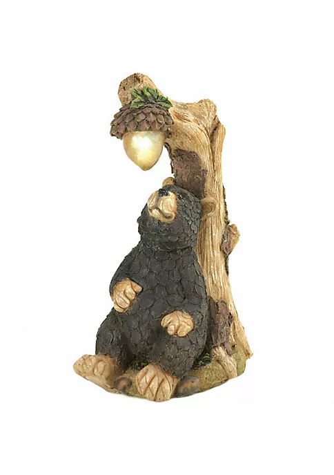 By day, this adorable black bear will charm you as he ponders how to fetch that delicious acorn dangling above him. By night, the acorn will light up thanks to the built-in solar panel. Perfect for yard or garden
